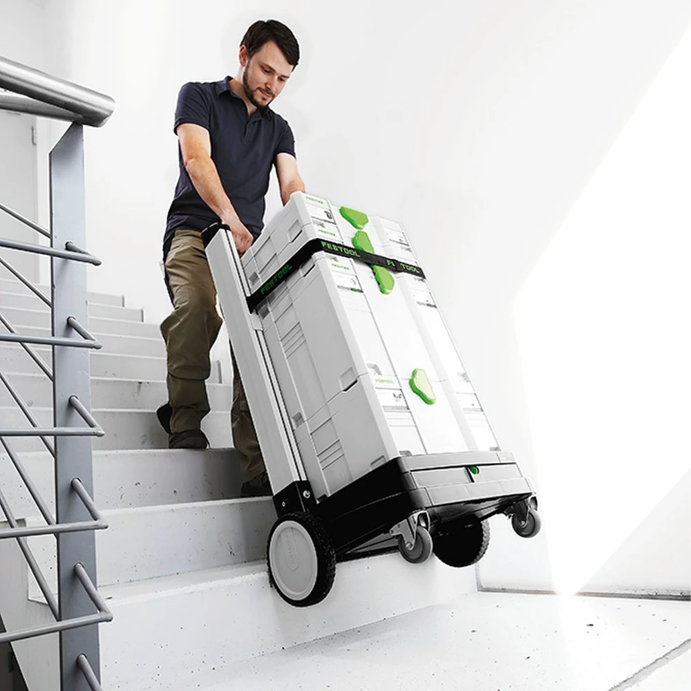 Designed for transporting SYS Classic and SYS T-LOC. The extra large wheels (diameter 200 mm) allow for ease of movement on stairs while the swivelling and lockable front castors provide easy steering in all directions. The safety strap ensure your equipment is secure. The SYS-ROLL has a carrying power of 100 kg, front castor diameter 75 mm, rear castor diameter 200 mm and weighs only 5 kg.