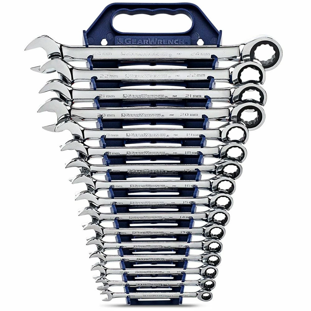 16 Pc. 12 Point Ratcheting Combination Metric Wrench Set