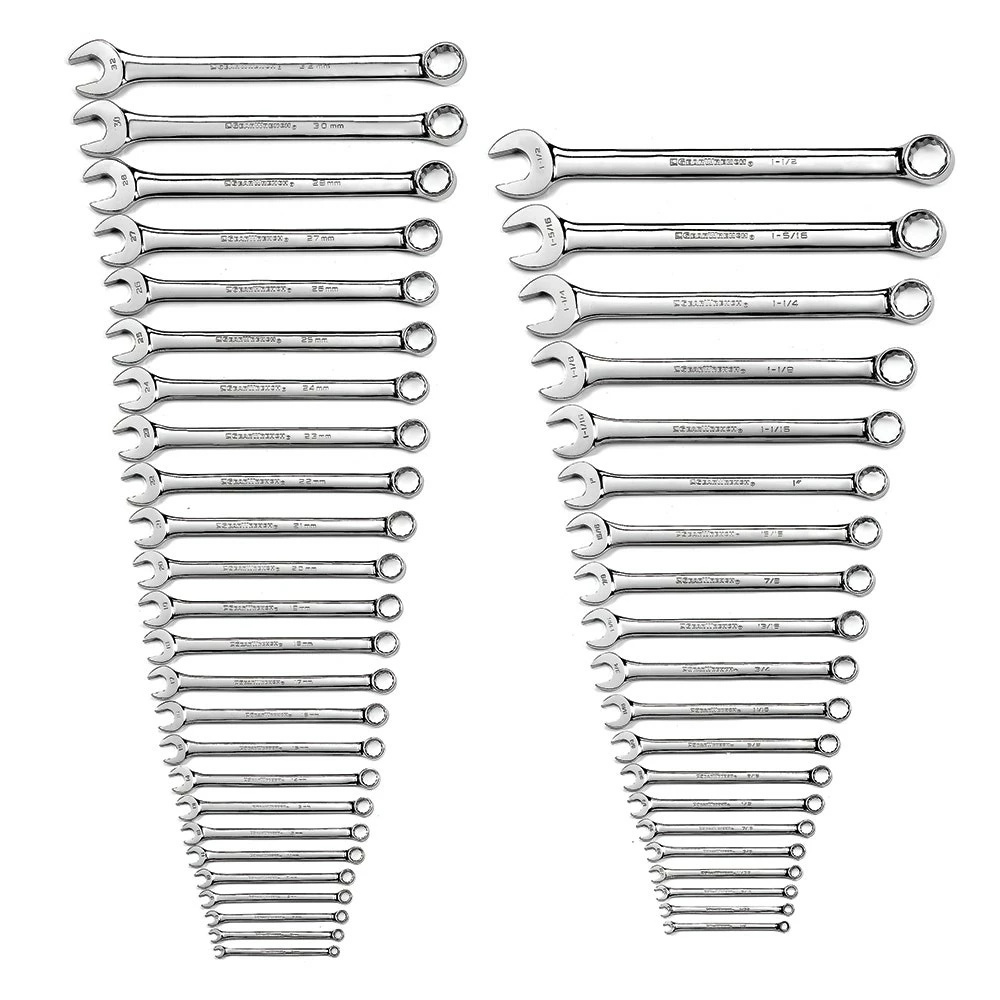 - 19 SAE Wrenches; 1/4″, 5/16″, 11/32″, 3/8″, 7/16″, 1/2″, 9/16″, 5/8″, 11/16″, 3/4″, 13/16″, 7/8″, 15/16″, 1″, 1-1/16″, 1-1/8″, 1-1/4″, 1-5/16″, 1-1/2″