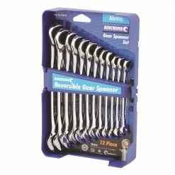The Kincrome Gear Spanner has all the benefits of standard spanners and more. The strong fine gear ratcheting ring end needs as little as 5° of sweep to move fastener, a standard fixed ring end needs a minimum of 30° or 6 times the area. Kincrome Gear Spanner ratcheting ring end has a Peripheral Drive™ configuration that virtually eliminates the rounding off of fasteners. The narrow and thin head, combined with fine gear tooth design makes the Kincrome Gear Spanner suitable for working in tight and hard to access areas where a ratchet and socket will not fit. Combined with the ‘Fine Tooth’ technology Kincrome Gear Spanners are the ‘state of the art’ in spanners and come with a handy plastic storage case.