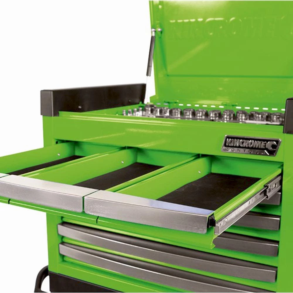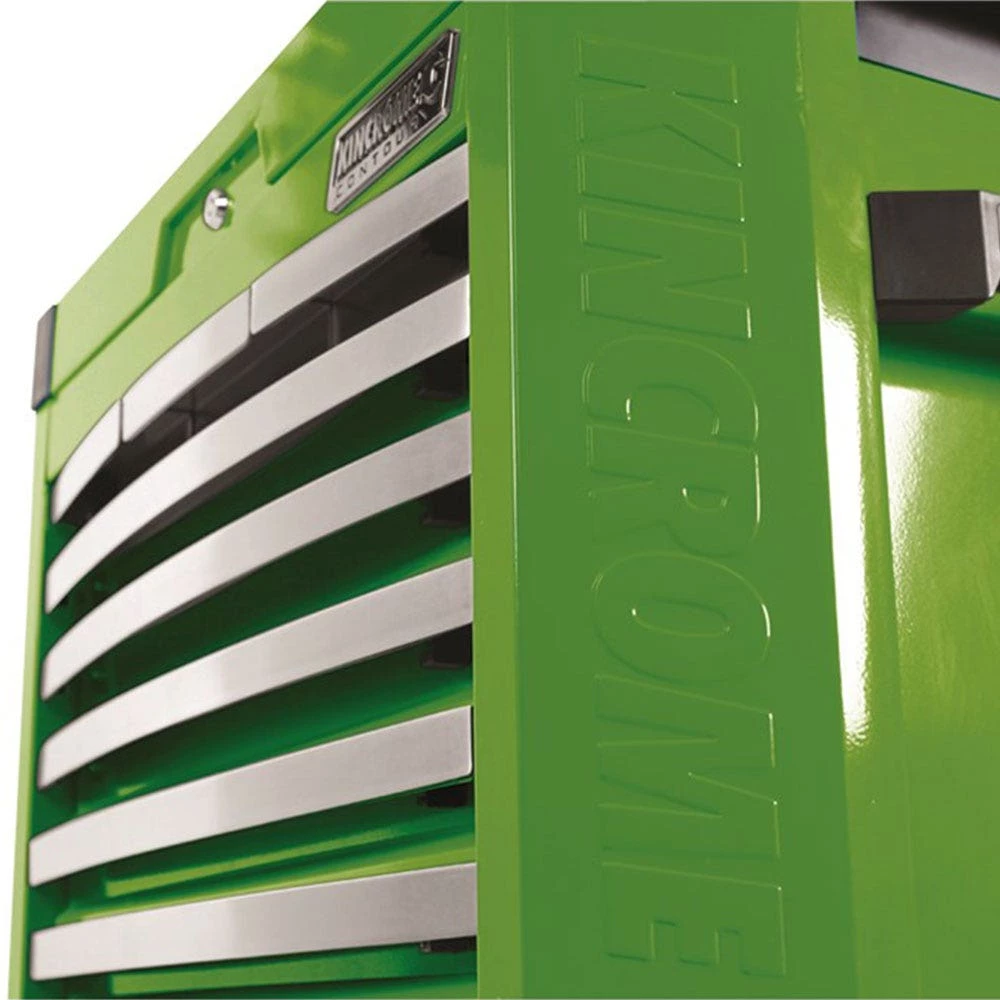 The CONTOURĀ® range of Tool Kits, Chests and Trolleys is our premium level range, developed for those looking for trade quality tools and features. CONTOURĀ® comes loaded with premium features for apprentices and professionals, combined with modern styling, offering you the very best that KINCROME has to offer. Designed in Australia by KINCROME, the CONTOURĀ® range features a sleek contoured design, available in a variety of gloss colours with a UV protected powder coated finish. CONTOURĀ® storage comes standard with a range of premium features, including; the chamfered Kincrome embossed side panels, āAutomatic Drawer Retention System (ADRS)ā locking system, heavy duty āBig Gripā side carry handles and a contoured trolley handle, side folding work trays, MDF worktop and four swivel heavy duty polyurethane castors for easy manoeuvrability.