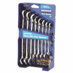 The Kincrome Gear Spanner has all the benefits of standard spanners and more. The strong fine gear ratcheting ring end needs as little as 5° of sweep to move fastener, a standard fixed ring end needs a minimum of 30° or 6 times the area. Kincrome Gear Spanner ratcheting ring end has a Peripheral Drive™ configuration that virtually eliminates the rounding off of fasteners. The narrow and thin head, combined with fine gear tooth design makes the Kincrome Gear Spanner suitable for working in tight and hard to access areas where a ratchet and socket will not fit. Combined with the ‘Fine Tooth’ technology Kincrome Gear Spanners are the ‘state of the art’ in spanners and come with a handy plastic storage case.