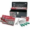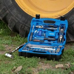 This portable automotive toolkit contains 85 of the essential tools for any start up automotive expert. Featuring ½” square drive sockets and accessories, combination spanners and a variety hex keys, knives, pliers and more. Ideal for a tradesperson who may be offsite and working remotely or it could be the go to kit for your home garage. This kit packs the punch with the essentials tools, all conveniently packed in one compact, lightweight blow mould case.